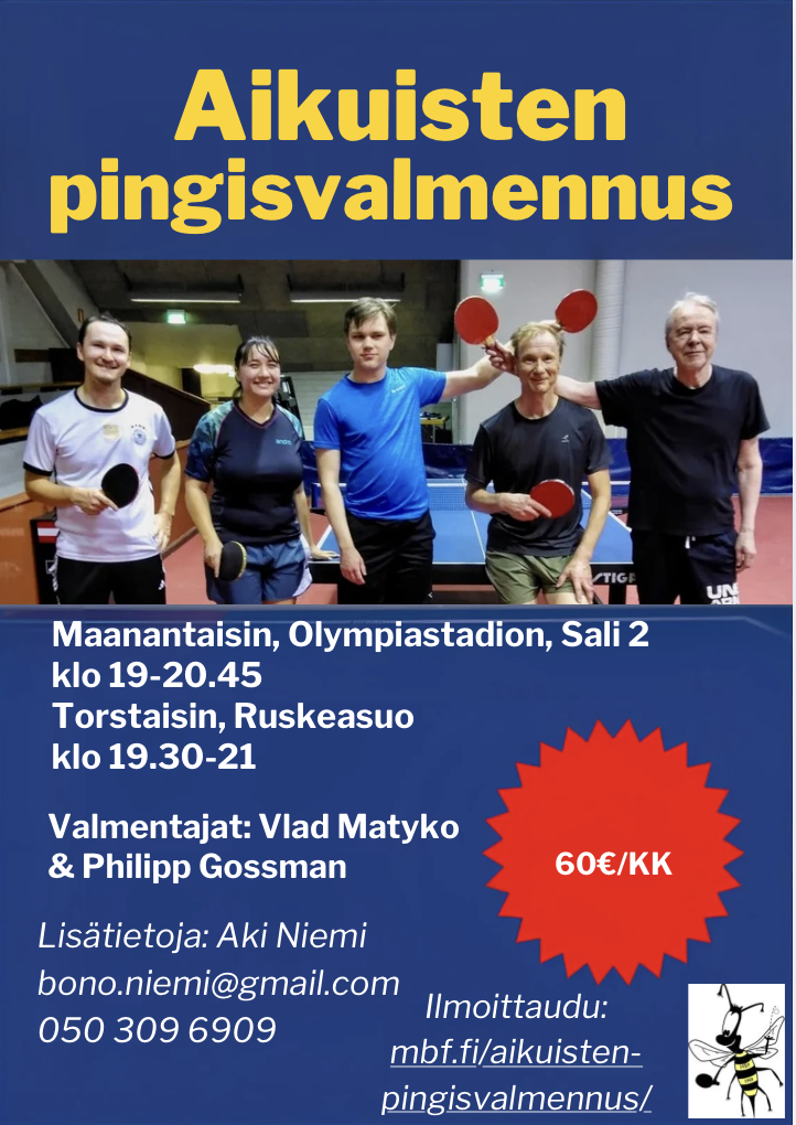 MBF:n jäsenille valmennus maksaa 150€ kaudessa (siis 30€ kuussa). Voit ilmoittautua mukaan ottamalla yhteyttä Aki Niemeen.